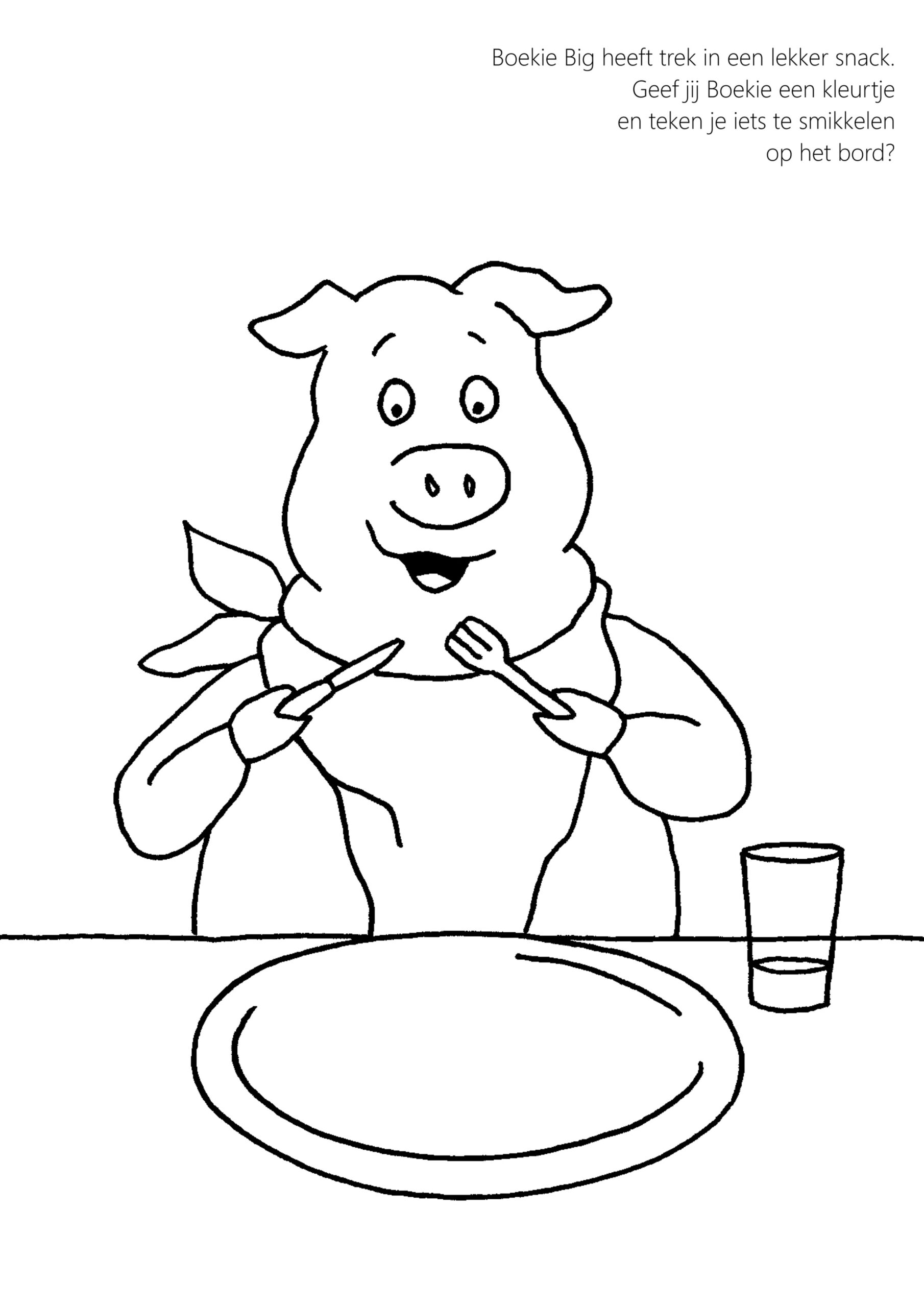 Een kleurplaat met Boekie Big.