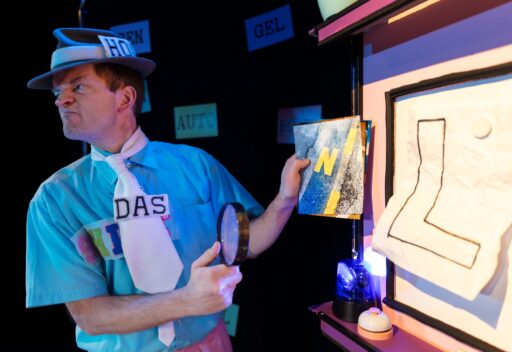 Deze interactieve voorstelling combineert elementen uit spannende detectivefilms met de verwondering van taal en de visuele kracht van letters en symbolen. Het publiek wordt uitgenodigd om actief mee te speuren, puzzels op te lossen en de kracht van woorden te ontdekken. Het mysterie wordt ontrafeld met een mix van humor, spanning en een vleugje magie, waardoor het publiek niet alleen nieuwe dingen ontdekt, maar ook vol verwondering kan genieten.
