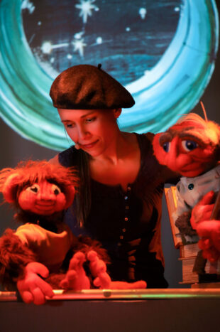 Vrolijke poppenkastvoorstellingen met zachte vilten poppen.